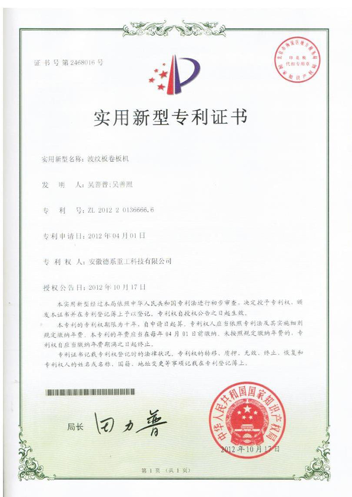 DETSCH 波紋板卷板機 Corrugated plate roller