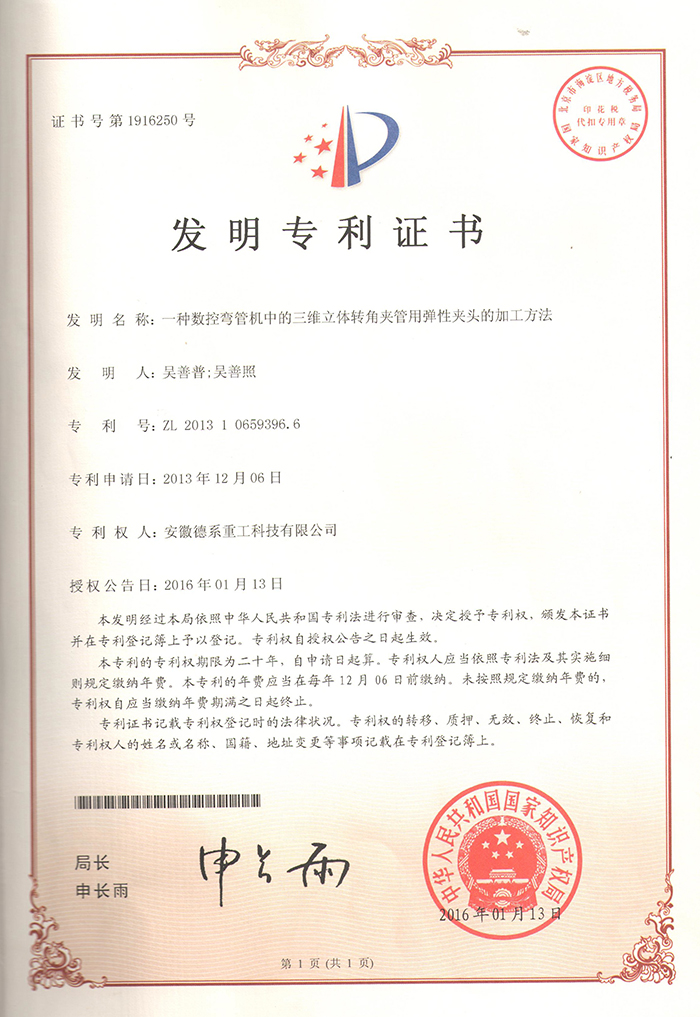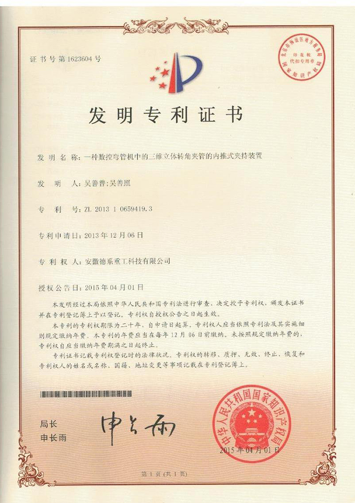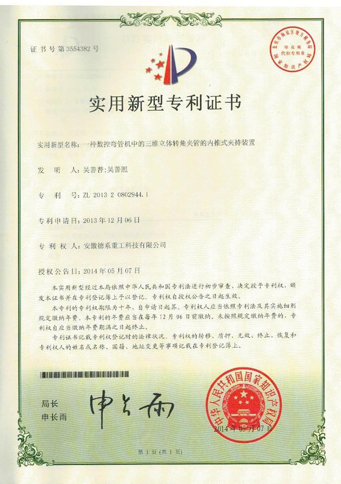 三維立體轉角夾管用內推式夾持裝置——發明專利