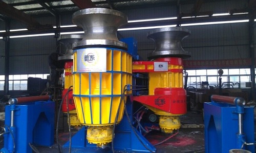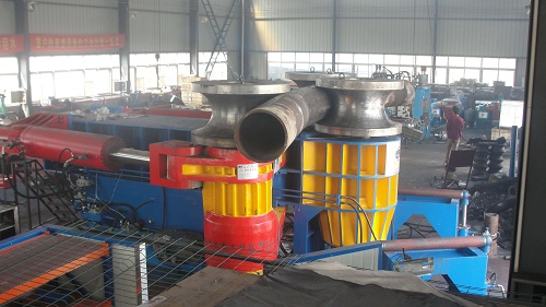 1.兩側托輥均由三個油缸驅動托料回轉裝置,實現三維運動(即:上下、左右、前后),防止非對稱截面型材彎曲時的扭曲變形。 2.亦可實現螺旋盤彎時對螺距的控制。 |