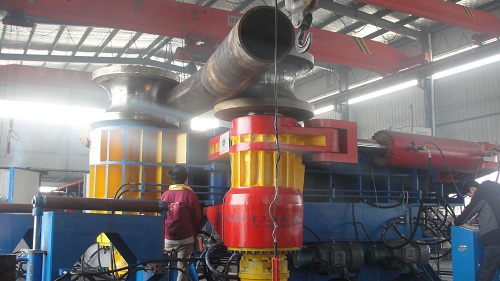 05.三輥主動軸選用二次電渣重熔氮化鋼,加工工序十多道。三輥回轉系均采用剛性好,精度高的進口德國FAG球面滾子軸承支撐和雙列圓錐滾子軸承復合支撐,其中兩下輥更是采用滑動和滾動相結合的復合支撐,鋼性好,精度高,可同時承受巨大的徑向力和軸向聯合負載。具有回轉損耗小,熱變形小,精度保持性好,壽命長等特點,滾動嚴禁使用銅套。