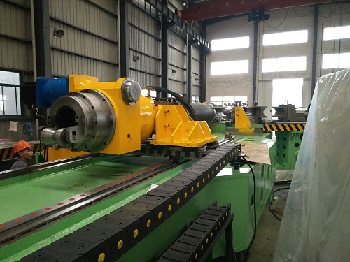 一、機(jī)頭和三道軌床身由高強(qiáng)度Q345或16Mn鋼板焊接而成,縱橫交錯加強(qiáng)筋設(shè)計并經(jīng)退火消除內(nèi)應(yīng)力和拋丸處理。床身有足夠的強(qiáng)度和剛性,插芯彎管時無震動現(xiàn)象,防永久變形,也同時為三個90°分布的重載滾柱直線道軌提供高精度保持性基礎(chǔ)。整機(jī)由龍門加工中心整體加工,床身和機(jī)頭有極高的精度(實用新型專利)。