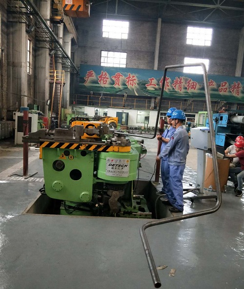 2.慢速抽芯,在彎曲極小半徑薄壁管的同時(shí)進(jìn)行緩慢抽出彎頭處的多球芯軸,具有極好的矯圓和除皺作用。