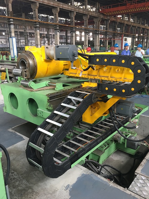 1.小車抓料(炮筒)動(dòng)作由內(nèi)置式空心結(jié)構(gòu)油缸推動(dòng)15°彈性夾頭完成,結(jié)構(gòu)緊湊極穩(wěn)定,夾持力大,夾管時(shí)無管材位移現(xiàn)象(發(fā)明專利),夾管精度極高(小車在實(shí)現(xiàn)推彎或頂鐓作業(yè)時(shí)夾管無打滑現(xiàn)象)。